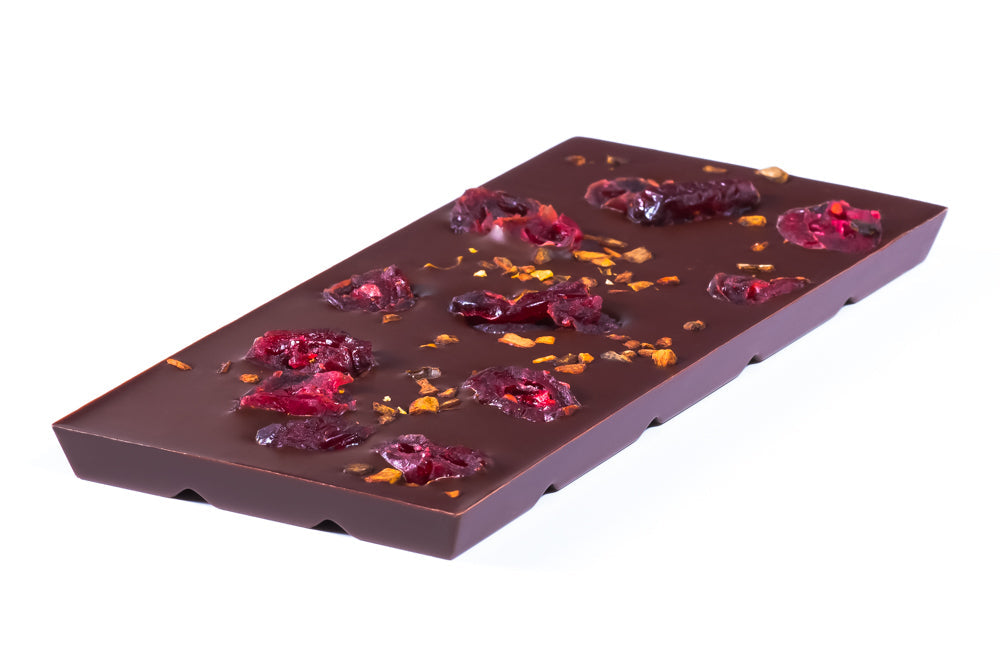 But the magic doesn't stop there. Real cranberries are skillfully folded into the dark chocolate, introducing a delightful burst of fruity freshness that harmonizes perfectly with the complex flavours of the mulling spices and the richness of the dark chocolate.